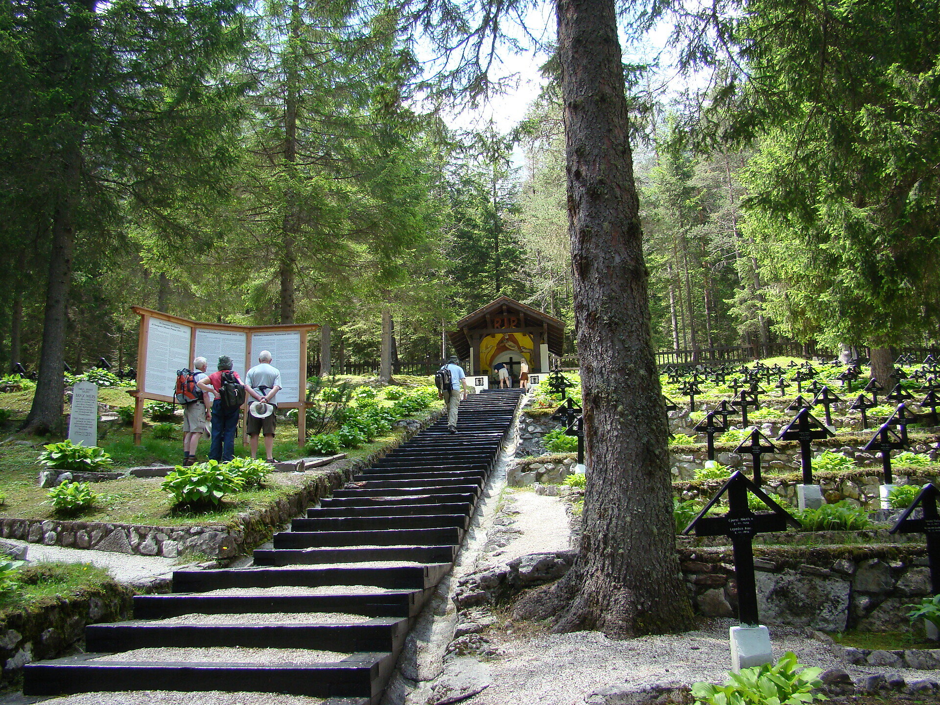 Krieg & Verteidigung: Eine Stahlskulptur in Form eines Geschützpanzerwagens befindet sich an dem Ort, an welchem sich die gewaltige Festungsanlage von 1884 befindet, welche vom Kaiserreich Österreich-Ungarn erbaut und nach 1919 von Italien übernommen wurde. 1942 wurde sie mit ausgedehnten Bunkeranlagen ergänzt.