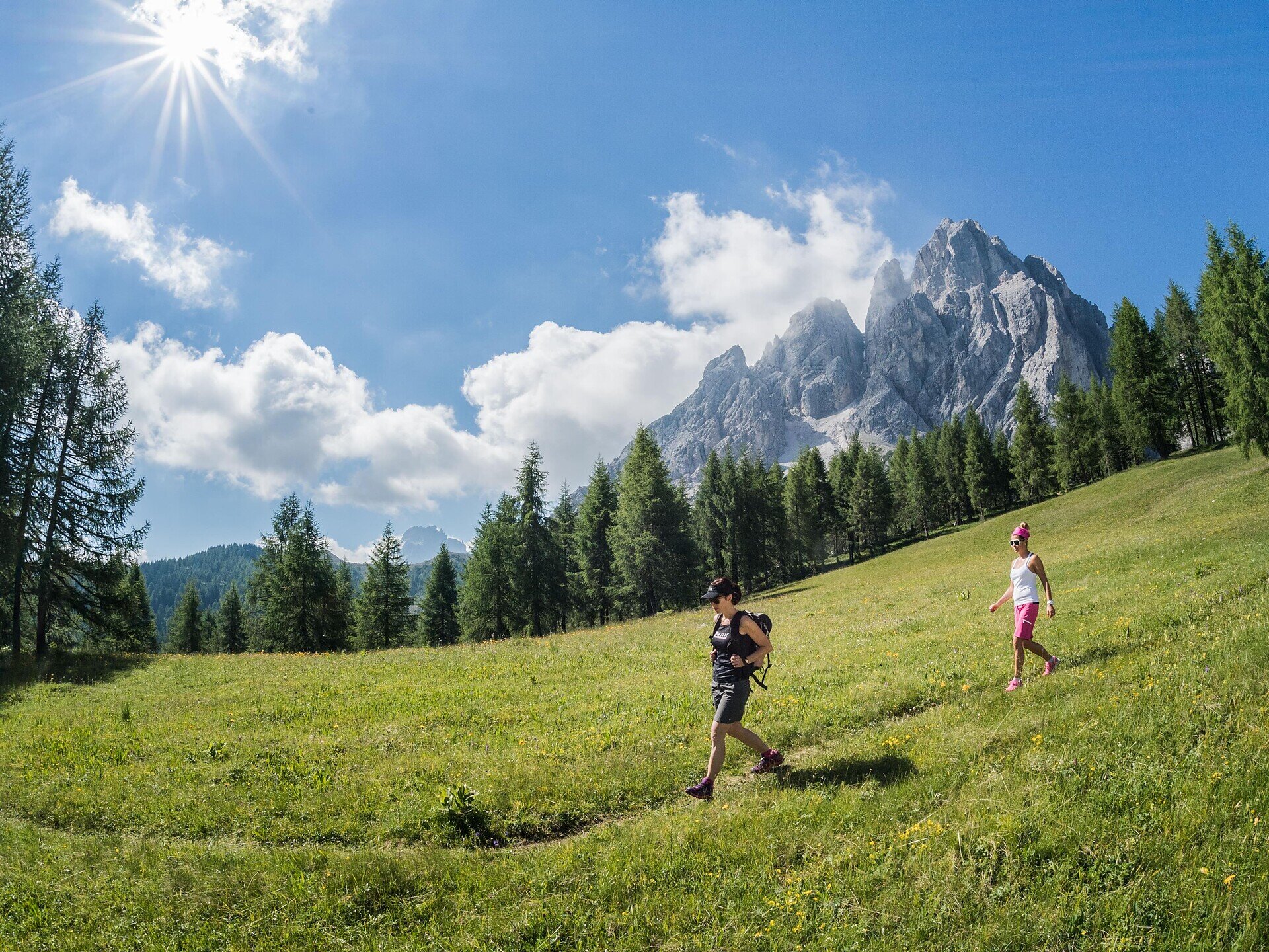 Vom Fernheizwerk in Sexten aus folgt man dem Forstweg mit der Markierung Nr. 12B und wandert durch das Gselltal stetig bergauf. Der Weg ist teilweise steil, führt aber gut begehbar durch schattigen Wald bis zum Gipfel des Außergsell. Von dort geht es über einen etwas flacheren Grat auf dem Weg Nr. 12 weiter zum Innergsell. Die weitläufigen Bergwiesen sind besonders im Sommer ein farbenprächtiges Blütenmeer. Der Abstieg erfolgt über den Weg Nr. 12 ins Fischleintal, wo man den Sextner Rundweg (Weg Nr. 1) einschlägt, der zurück zum Ausgangspunkt beim Fernheizwerk führt. Entlang der gesamten Strecke gibt es keine bewirtschaftete Hütte. Daher empfiehlt es sich, ausreichend Proviant mitzubringen – zahlreiche idyllische Plätze laden unterwegs zum Picknicken ein.