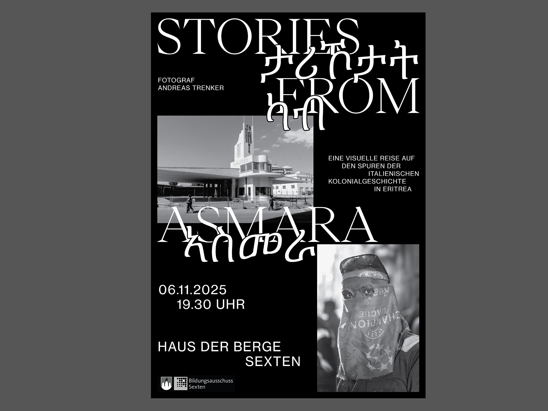 Am 6. November 2025 um 19.30 Uhr findet im Haus der Berge ein Vortrag mit Fotografien über die Stadt Asmara statt – ein faszinierendes Zeugnis der italienischen Kolonialgeschichte in Eritrea.