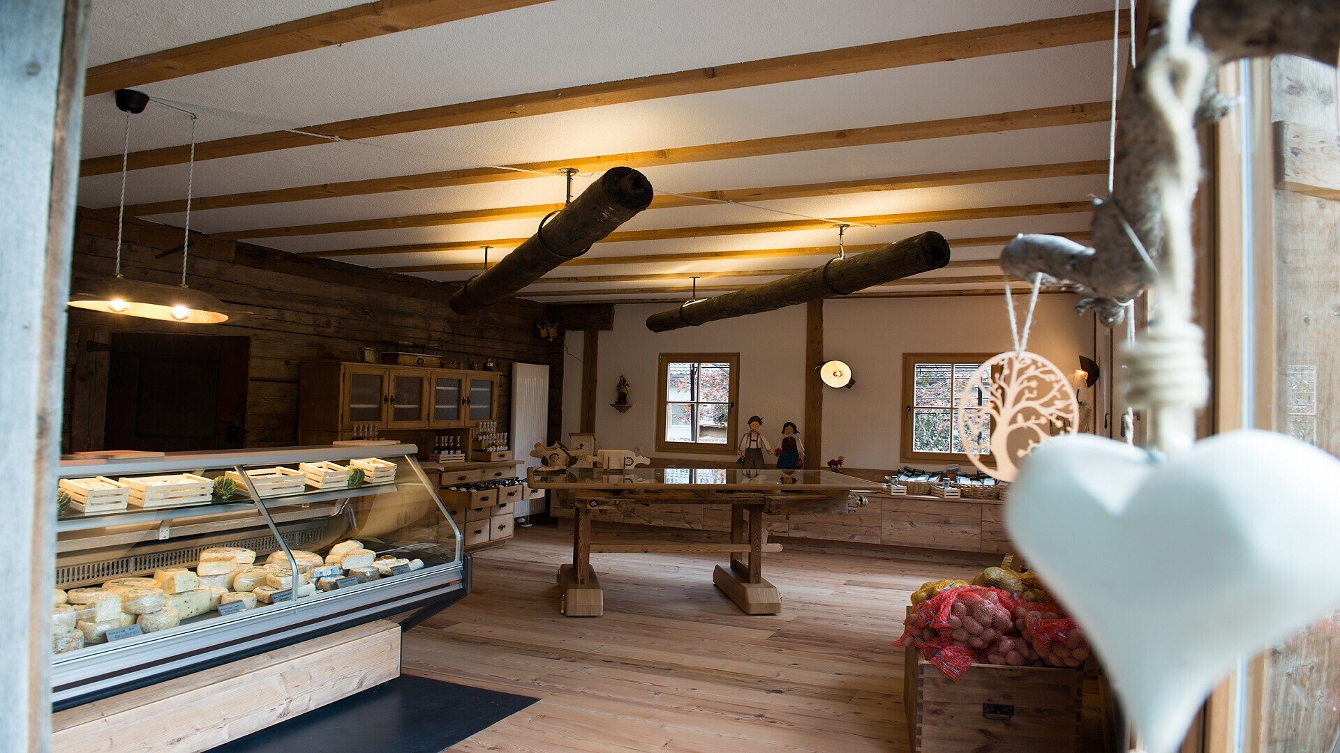Auf 1200m wird die Milch von den Ziegen und Kühen zu einem hervorragenden Heumilchkäse verarbeitet. Diesen kann man auch ganzjährig im Hofladen kaufen.