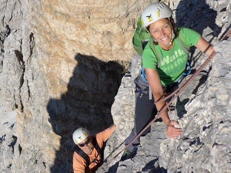 The 550 m long and vertikal face applies for long time as impossible and the spectacular ascent by E. Comini in the year 1933 helps to the tour to became world-famous. According to this the audience was international, which in the last 85 years pilgered for the ascent of the tour. Also today the tour represents a challenge. The 16 ropes long tour, which on cruxs requires the 7th grade, turns the climbers through long distance without hold in the vertical. Who is matched for this can enjoy the adventure Comini.