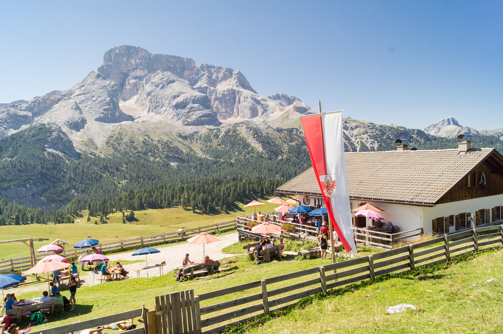 Starting from the Plätzwiese highplateau car park, hike to the Bergasthaus Plätzwiese hut, turn left at the little church and follow hiking trail no. 40 until you reach the turn-off to the Dürrenstein/Picco di Vallandro. Turn right and the hiking trail nr. 40/A leads you directly to the Almhütte Plätzwiese hut.