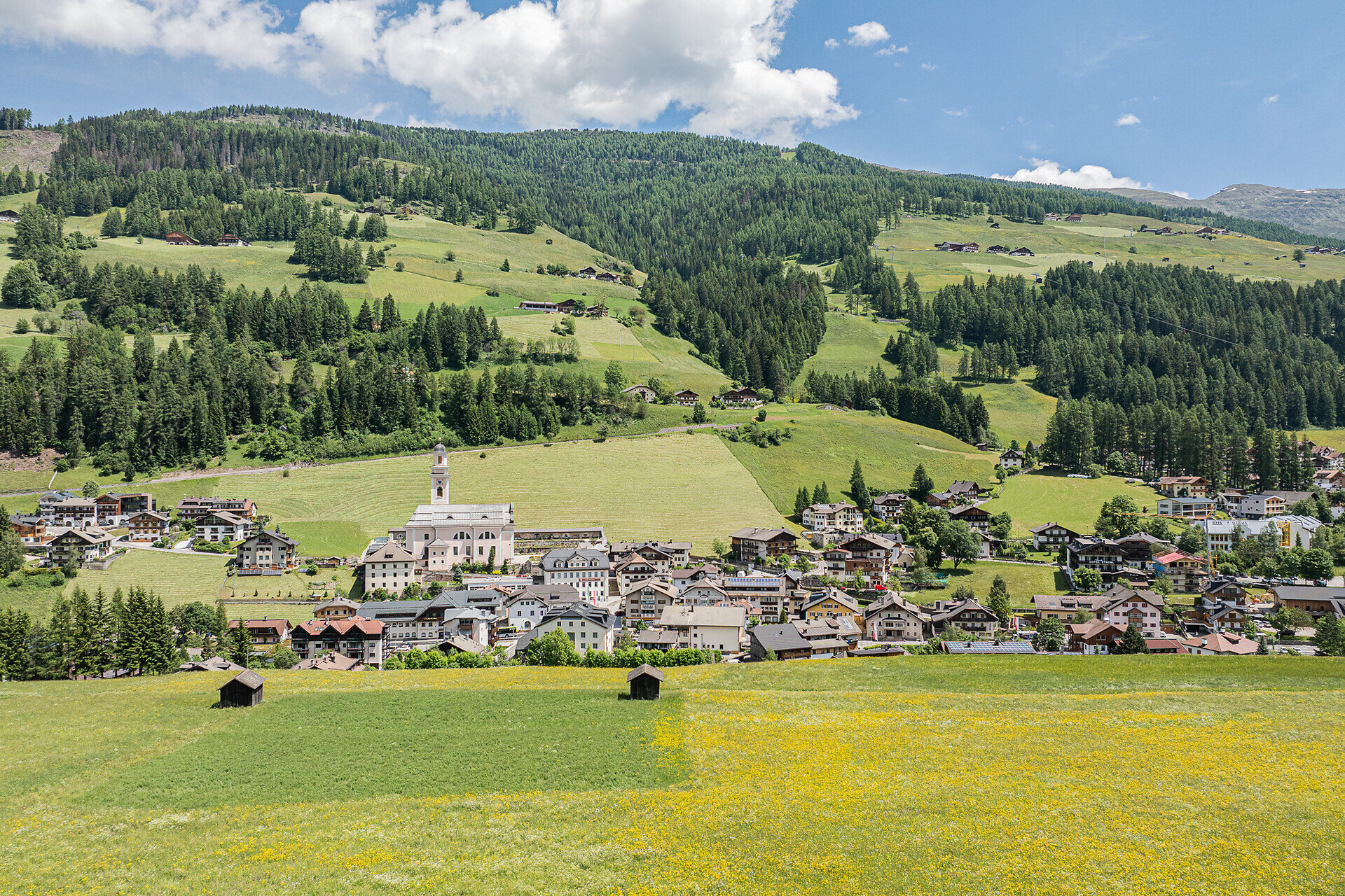 Walk from the Sexten parish church along an asphalted road with a magnificent view of the Sexten Sundial uphill to Gasthof Panorama (1576 m). From there, you have various options for further hiking: towards the Helmhanghütte hut and the Sexten alpine pastures, or uphill to the Lärchenhütte hut and further to the Helm restaurant.