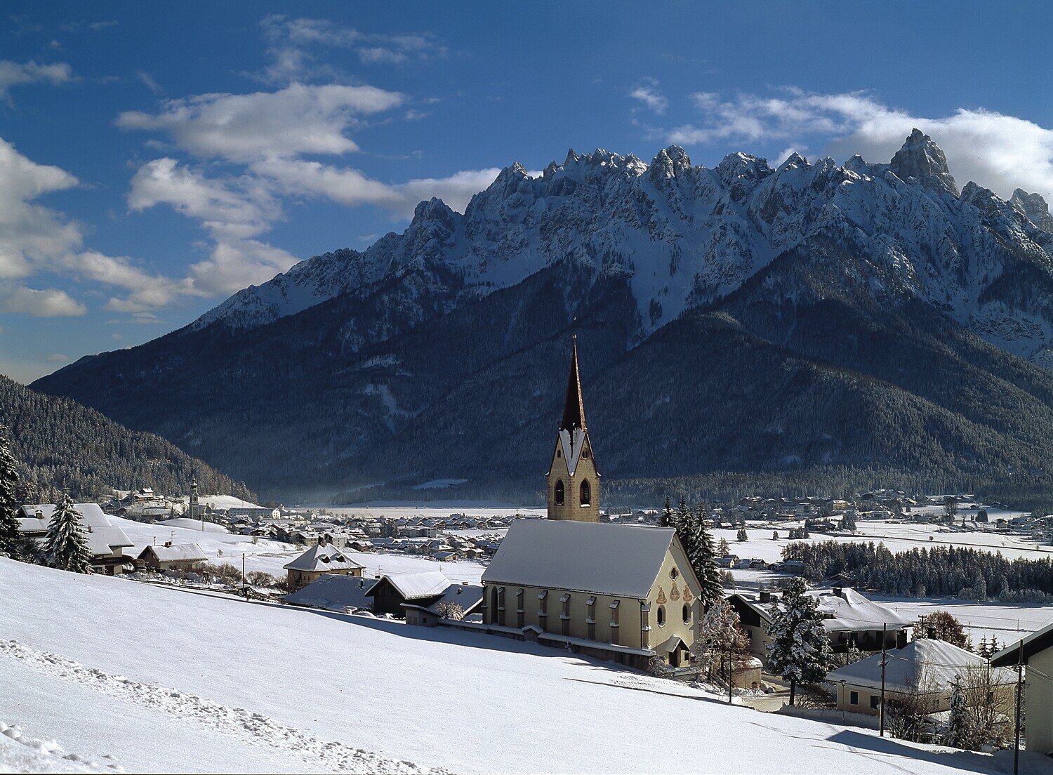 The snowshoe hike on the sunny side of Toblach/Dobbiaco offers a beatiful view over the Höhlensteintal/Landro valley and the Toblach/Dobbiaco lake.
