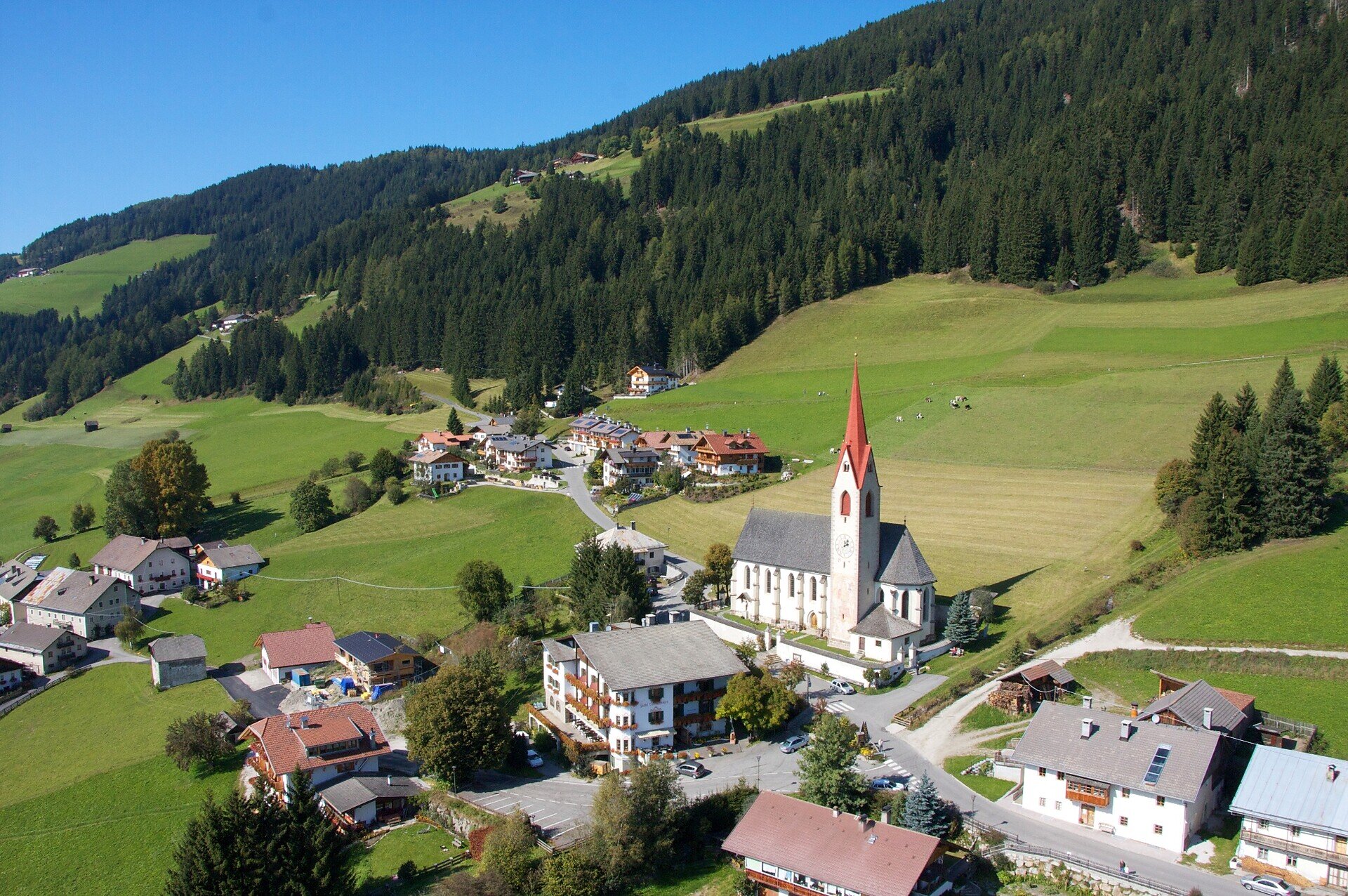 This hike leads from the village center of Dobbiaco to the Aufkirchen campaign group, this path is considered moderately difficult. From Aufkirchen, a short path behind the Hotel Kirchenwirt takes you to Neunhäusler and finally from there, either in a westerly direction to Niederdorf or in an easterly direction to Dobbiaco. The hike is on the sunny side of Dobbiaco and offers an incredible panorama of the Dolomites. It is especially recommended for families.