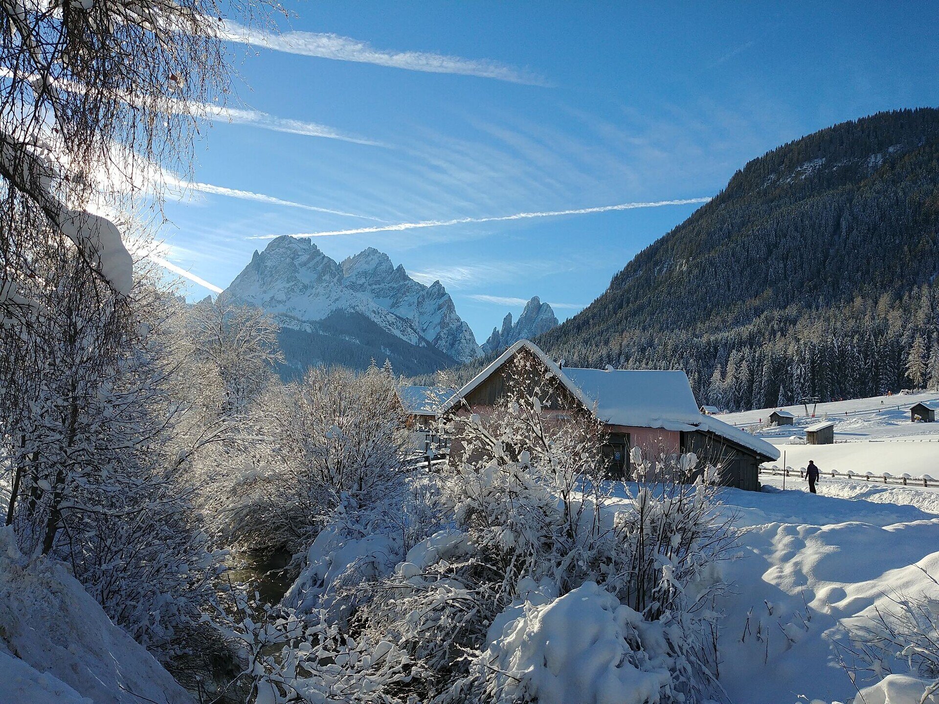 Coming from the Puster Valley, turn into the Sexten Valley at Innichen. Coming from the Kreuzberg Pass, follow the main road to Moos. Start anywhere in the center of Moos.
