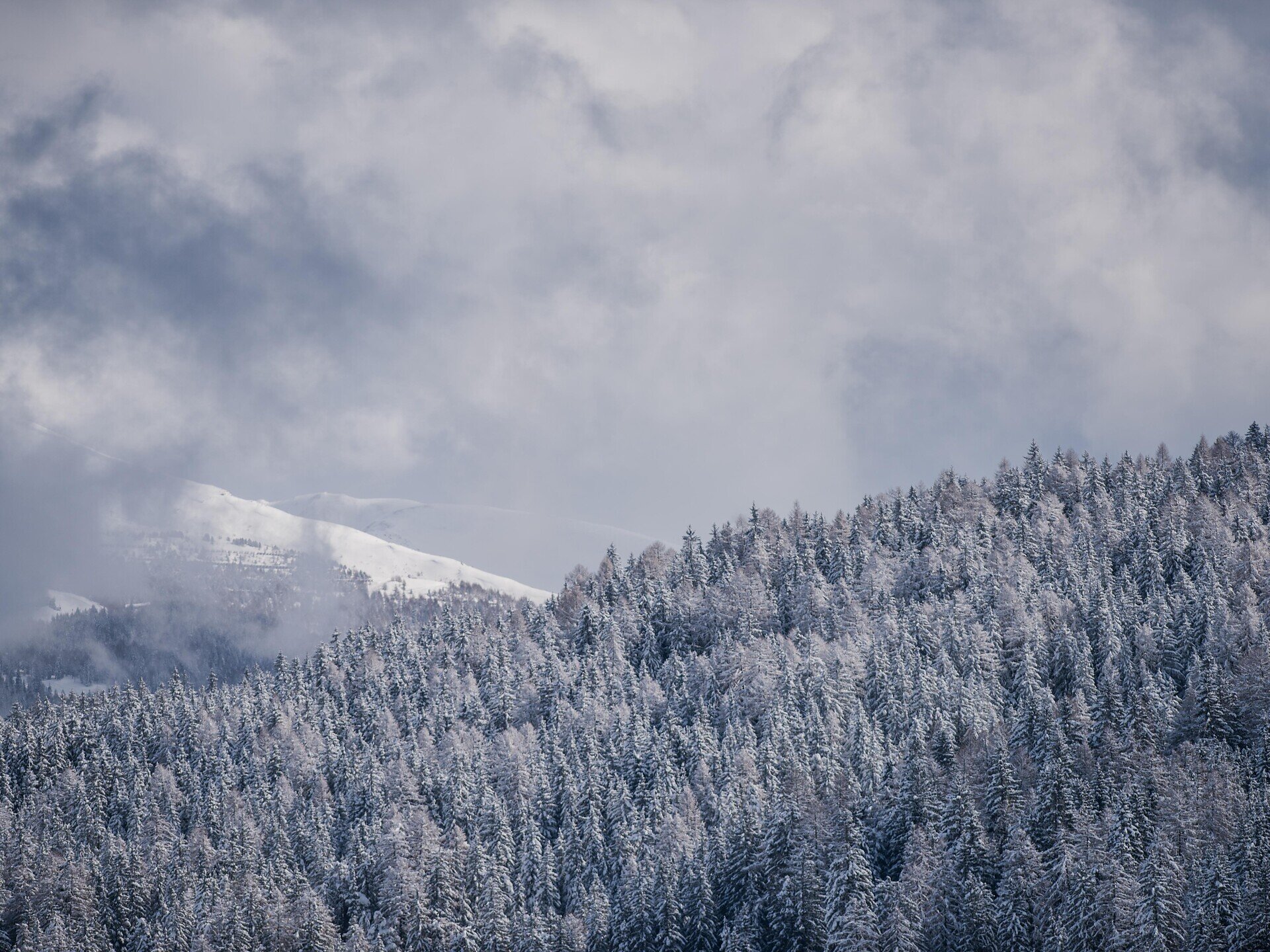 From the "Schnegger Säge" the trail no. 1 leads through the snowy Silvestertal/Valle San Silvestro valley in the middle of the forest straight ahead and sligthly uphill, only two times more steep, to the Silvesteralm/Malga San Silvestro hut (closed in winter).