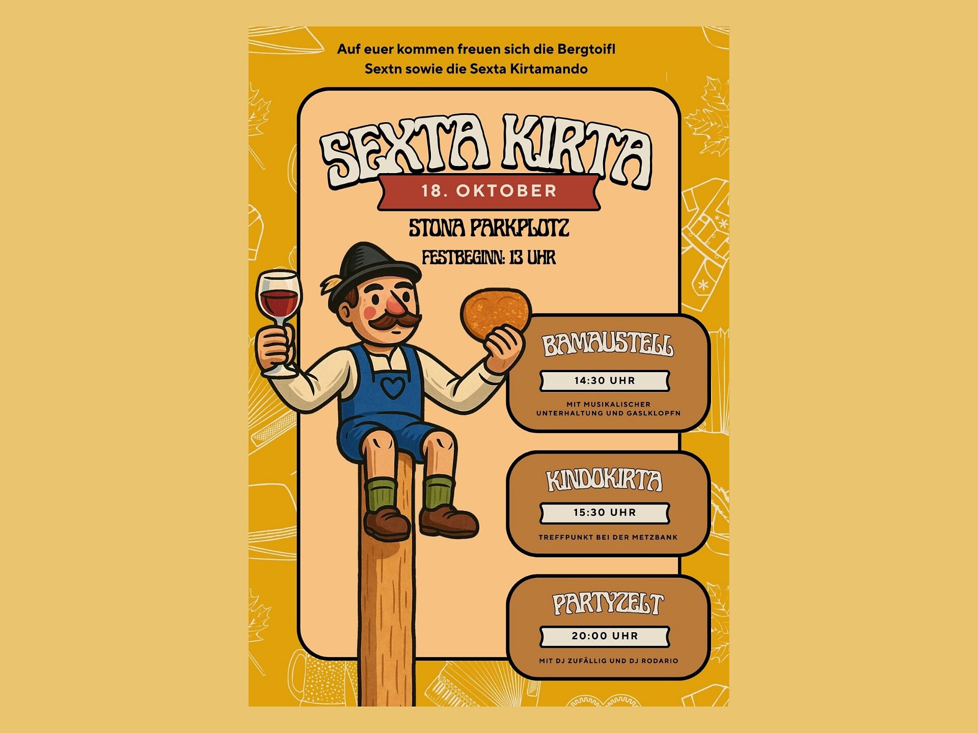 On 18 October 2025, the ‘Sexta Kirta’ will take place in Sexten. The festival begins at 1 p.m. The following programme items are planned: