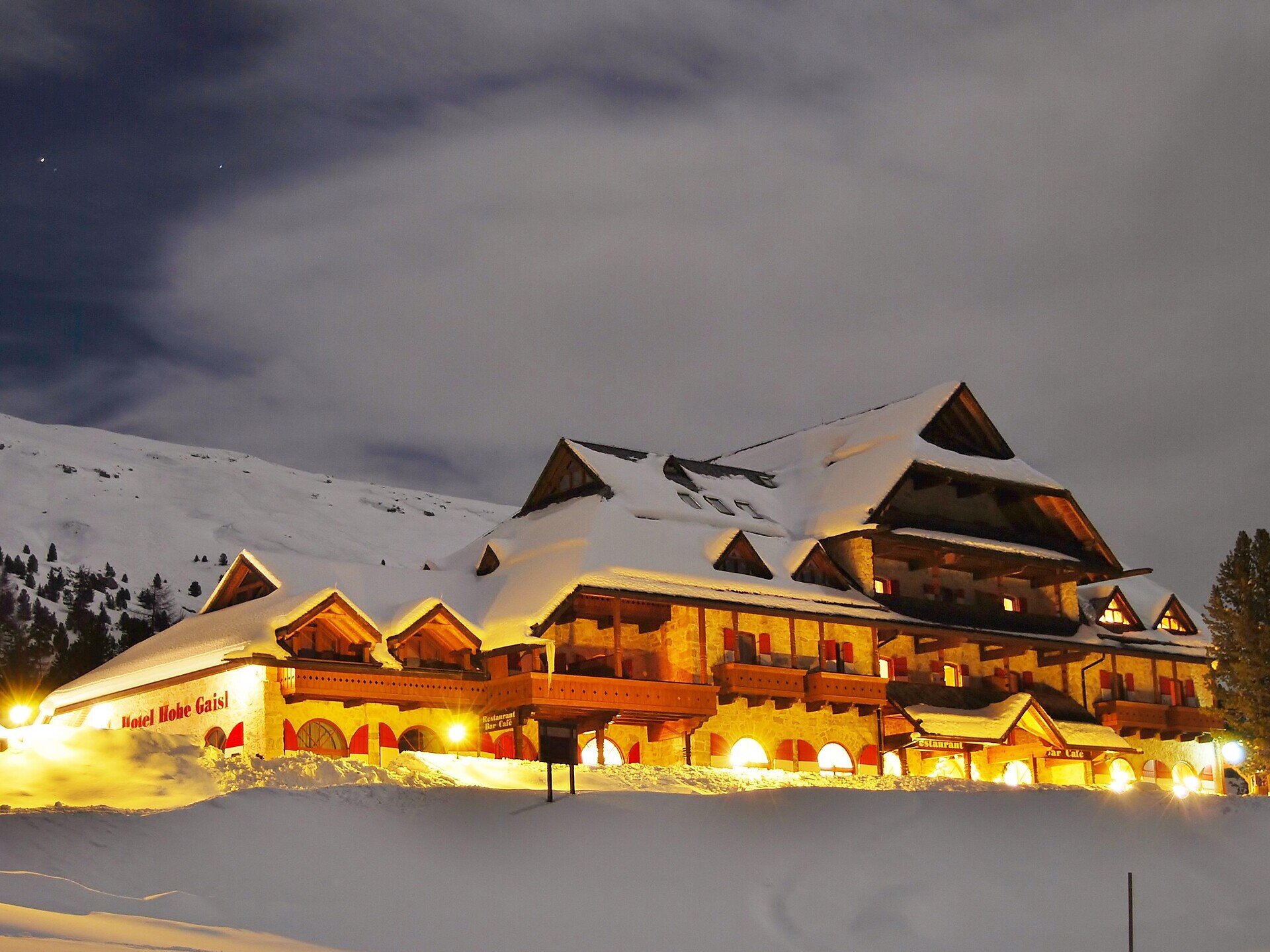 Mountain air makes you hungry! Come and take a break on your excursion to Prato Piazza and visit our restaurant or sit in one of the cozy Gothic traditional wood-panelled rooms or on the sun terrace and enjoy delicious South Tyrolean delicacies, a South Tyrolean Marende snack or coffee and cake!