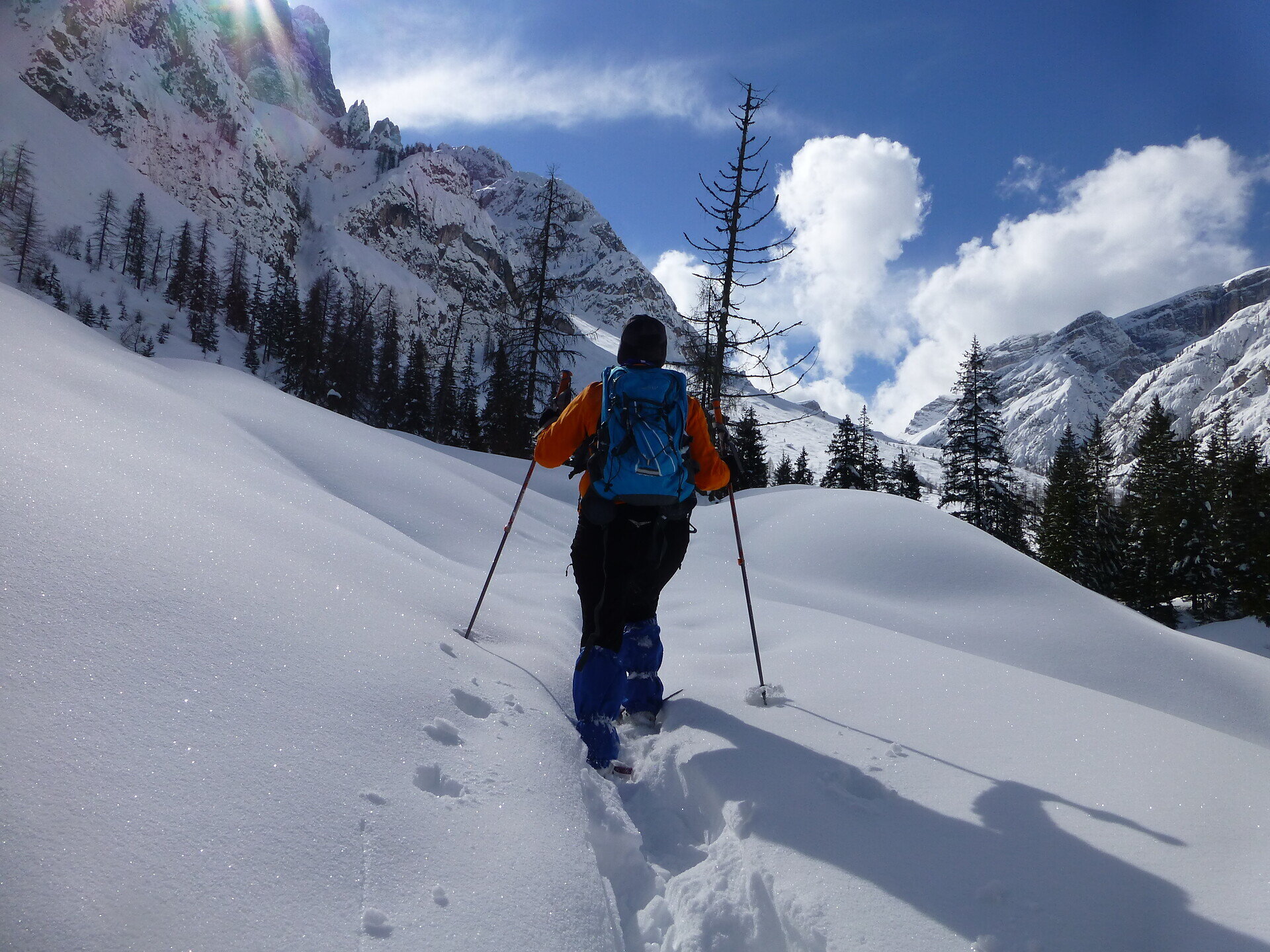 Una tranquilla ciaspolata nel cuore del Parco Naturale Tre Cime con le sue montagne maestose delle Dolomiti di Sesto.