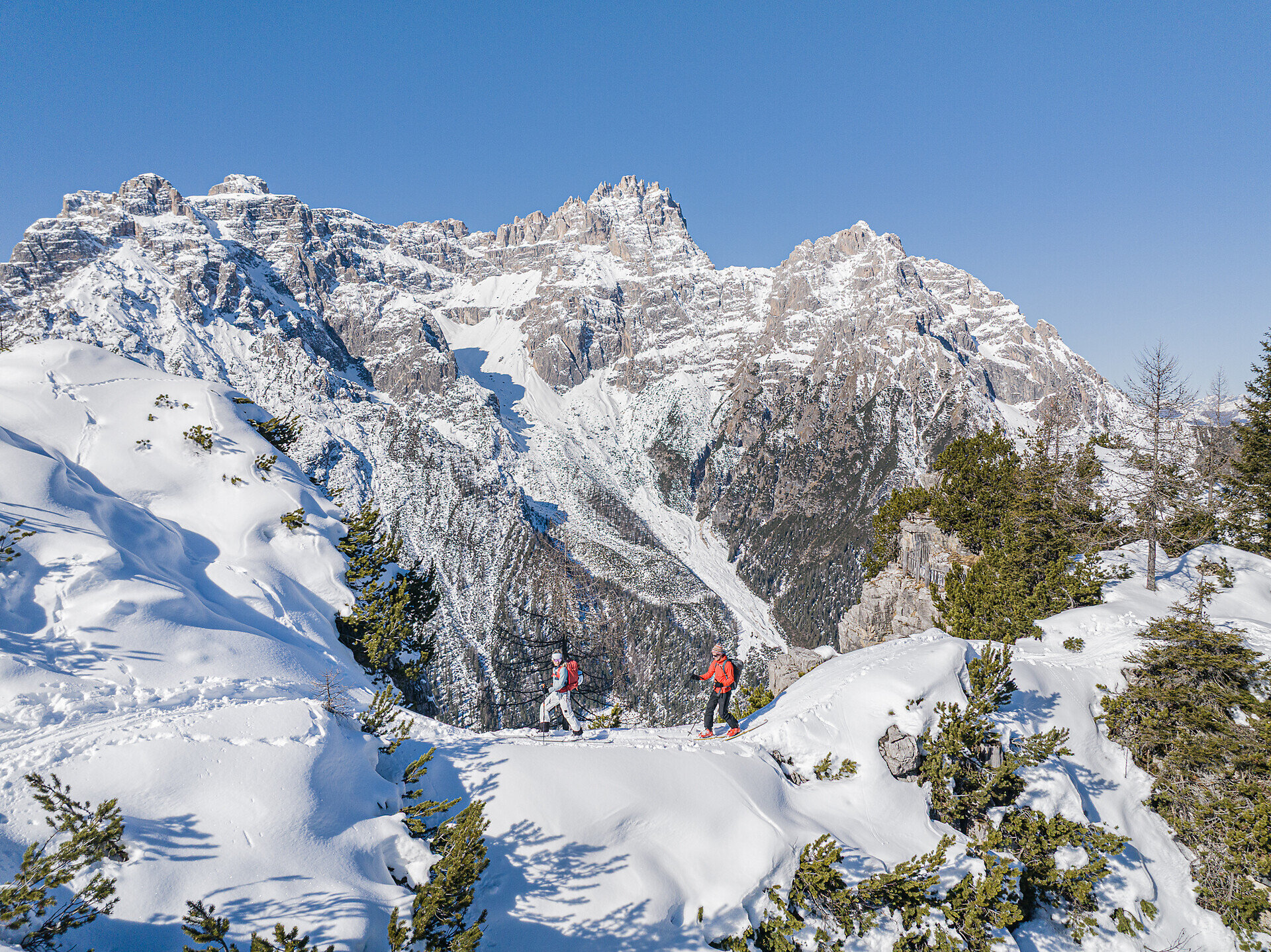 ATTENZIONE: Le escursioni con le ciaspole e le scialpinistiche devono essere intraprese solo da escursionisti esperti e ben allenati. È fondamentale prestare sempre attenzione al pericolo di valanghe – l’attrezzatura da autosoccorso (ARTVA, pala e sonda) è obbligatoria. Prima di ogni escursione è necessario controllare il bollettino valanghe e le condizioni meteorologiche. Chi non ha sufficiente esperienza dovrebbe affrontare queste attività esclusivamente con l’accompagnamento di una guida alpina qualificata.